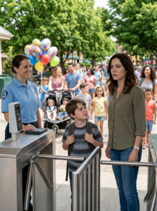 It was small—barely a beat—just long enough for the woman at the entrance to stop looking like every other cheerful employee whose job depended on smiles and patience. She had that practiced brightness when she took the tickets, the way people do when they’ve said “welcome” ten thousand times and still try to make it feel like the first. She scanned the first one and nodded without thinking. She scanned the second, and something shifted behind her eyes.