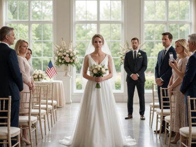 Sarah, the venue coordinator, helped zip the back of my dress because there was no mother to do it. No bridesmaids from my side. No sister. No one saying, Take a breath, you look beautiful, everything’s going to be okay.